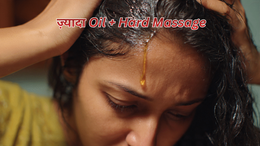 2. ज़्यादा Oil + Hard Massage