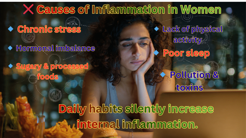 🧬 महिलाओं के शरीर पर सूजन का प्रभाव