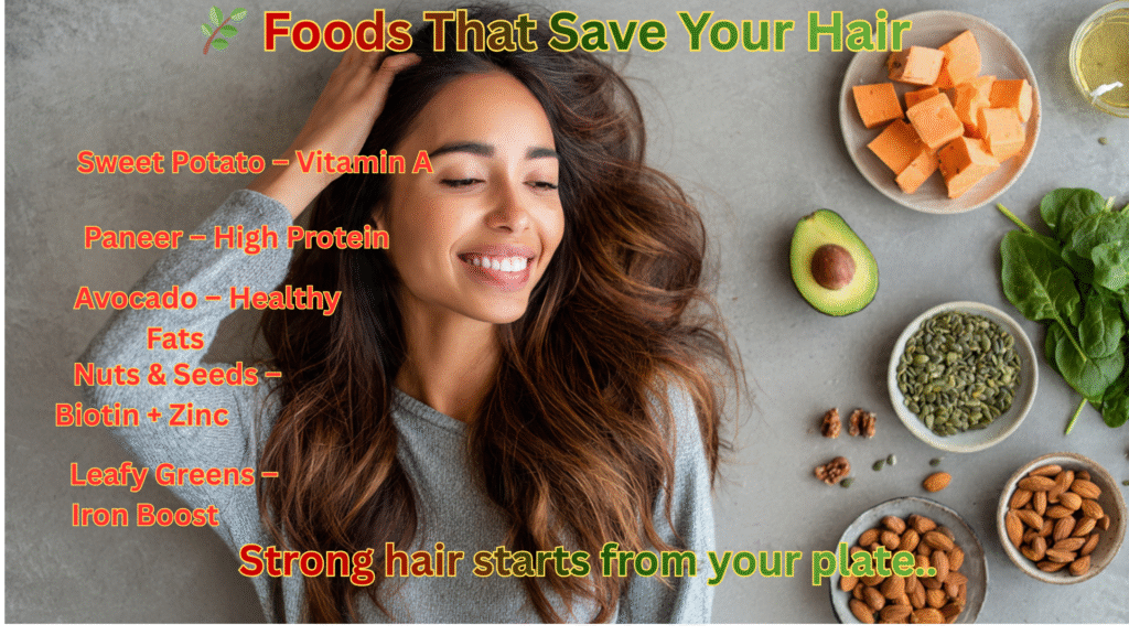 🌿 Foods That Save Hair (जो बाल बचाते हैं)