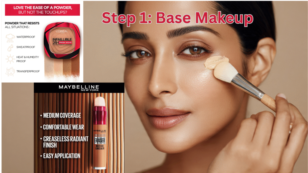 Step 1: बेस मेकअप – फाउंडेशन और कंसीलर