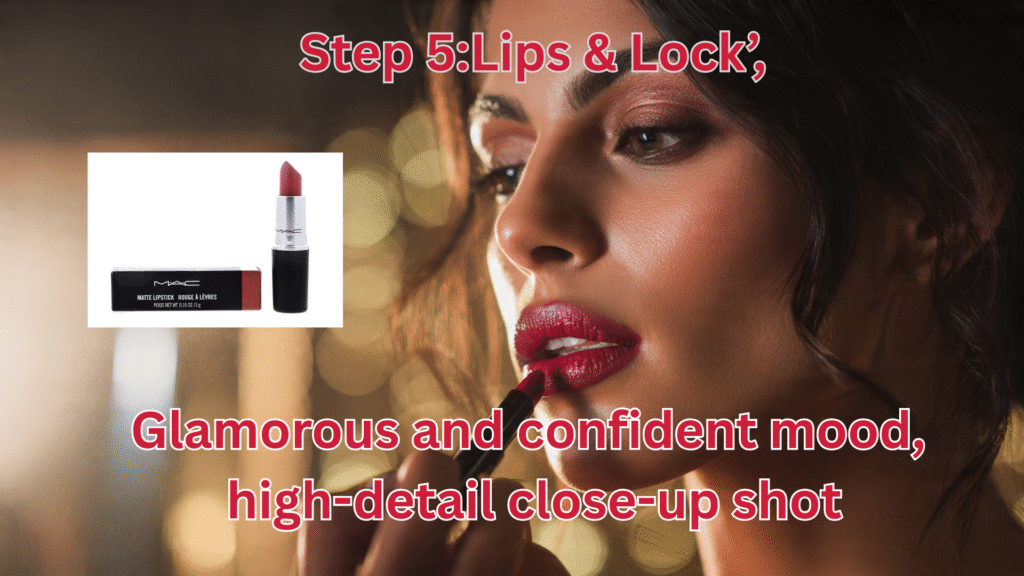 लिप्स को bold रखने के लिए लिपस्टिक लगाएं और makeup को लंबे समय तक बनाए रखने के लिए setting spray का इस्तेमाल करें।
